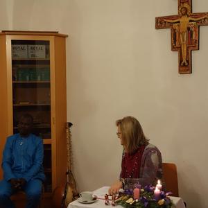 Pfarrsaal und in der ehemaligen Bibliothek eine stimmungsvolle Adventlesung. Frau Jursa lebte in afrikanischen und asiatischen Ländern sowie in Bosnien. Sie hat fünf Bücher in den Kategorien Sachbuch, Lyrik und Kurzprosa veröffentlicht und in Literaturzeitschriften und Anthologien in Österreich, Deutschland und Russland publiziert.Musikalisch wurde sie von Herrn Seidu Traaore aus Burkina Faso (Afrika) wunderbar begleitet.