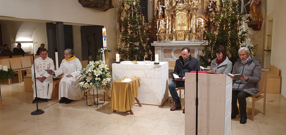 Um 21 Uhr feierten WGF-Leiterin Christa und Diakon Franz Habith in unserer Kirche die Christmette als Wort-Gottes-Feier mit Kommunionspendung.
