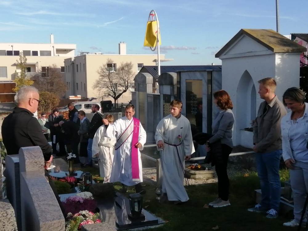 Zuvor wurde in schönen Texten und Gebeten, musikalisch umrahmt von der Marktmusik Unterpremstätten-Zettling, aller Verstorbenen gedacht. Auch wurden die Namen der im vergangenen Jahr heimgegangenen Personen nochmals laut ausgesprochen. Der aufsteigende Weihrauch verleiht den Verstorbenen besondere Würde und möge unsere Gebete zu Gott emportragen.