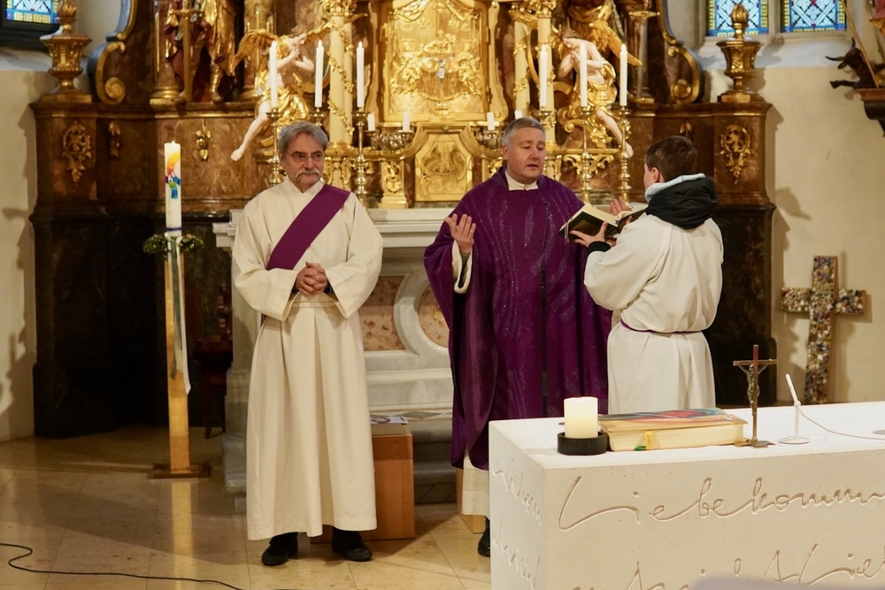 Der neu geweihte Diakon Johannes Chum feierte zusammen mit Vikar Norbert Glaser und Diakon Michi Zepf seine „Premiere“ als Diakon in seiner Pfarre, in der er schon seit gut 30 Jahren beheimatet ist.