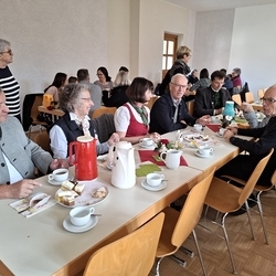 Zum anschließenden Pfarrkaffee lud der Kirchenchor herzlich ein und freute sich über viele Gäste, die das Zusammensitzen bei Kuchen und Kaffee/Tee in netter Gemeinschaft - auch mit Diakon Johannes und seiner Familie - sehr genossen. Ein netter Ausklang eines besonderen Vormittags!